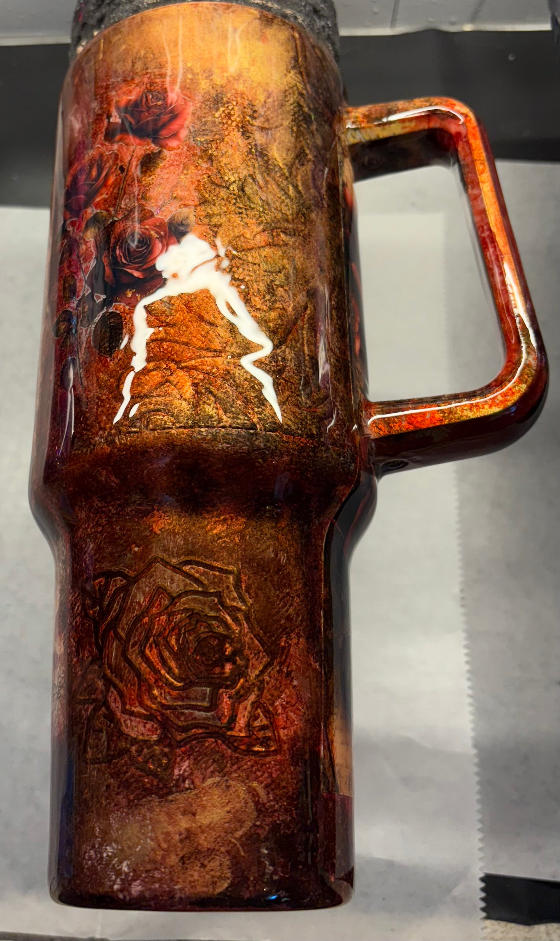 40 oz Gorgeous crimson & gold alcohol ink travel tumbler
